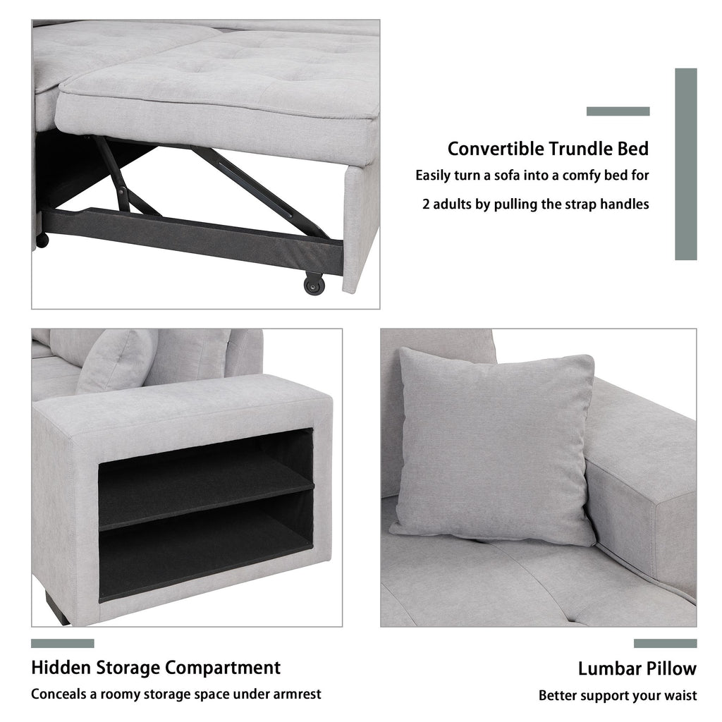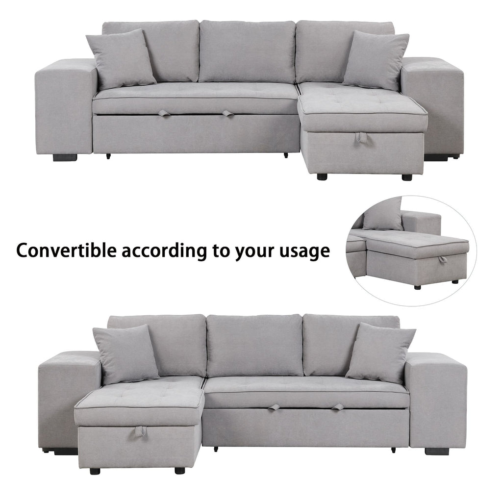 104.5" Pull Out Sleeper Sofa Reversible L-Shape 3 Seat Sectional Couch with Storage Chaise and 2 Stools for Living Room Furniture Set