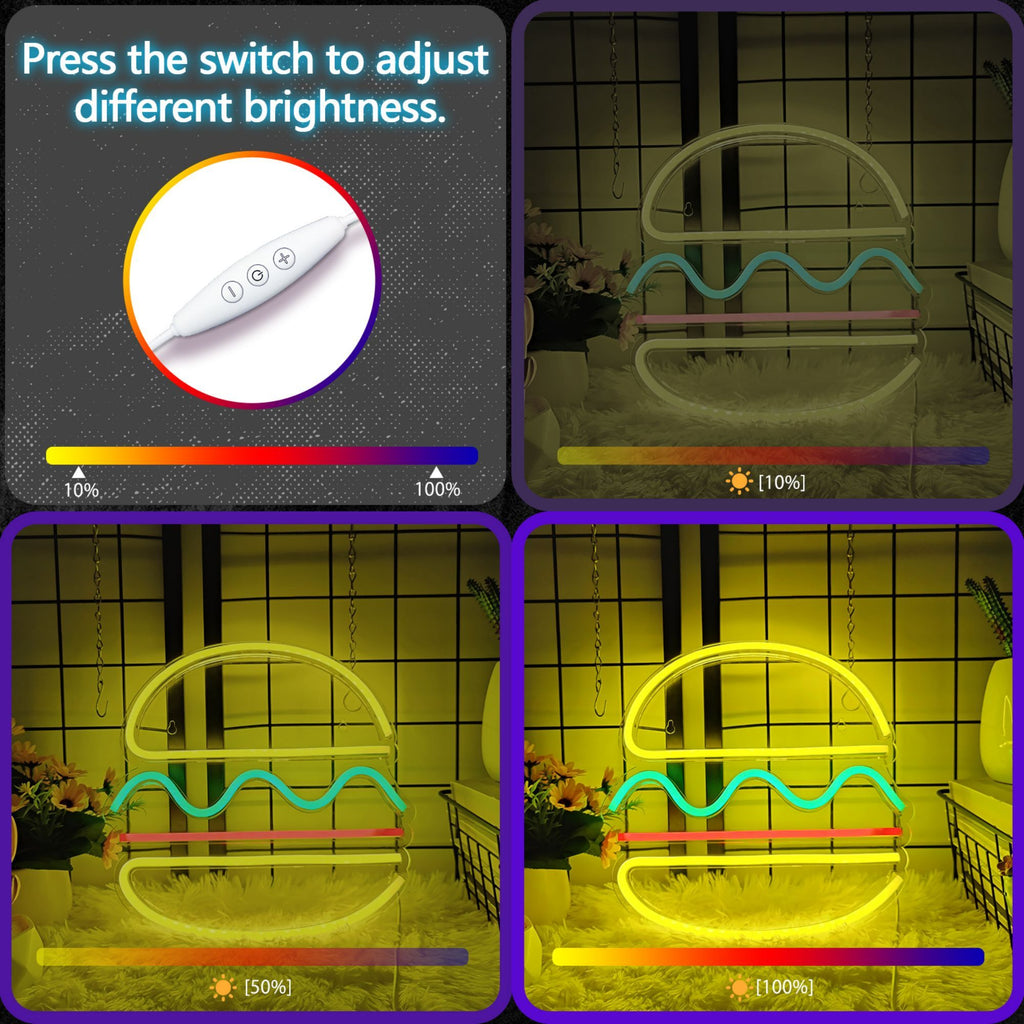 1pc 5V USB-Powered Neon Sign with Hamburger-Shaped Back Plate