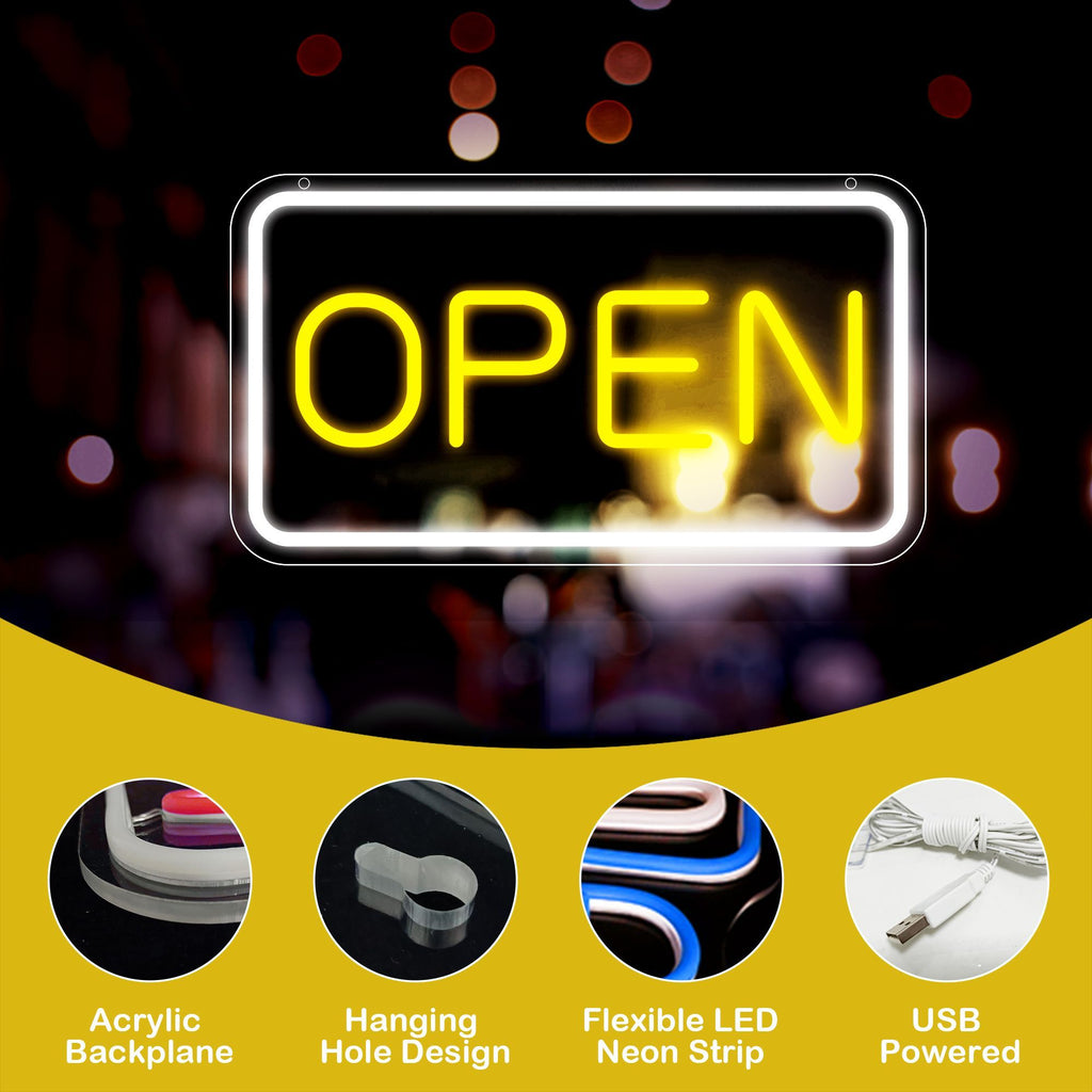1pc Open LED Neon Sign Light – USB Powered, Colorful, Adjustable Brightness, Plug and Play