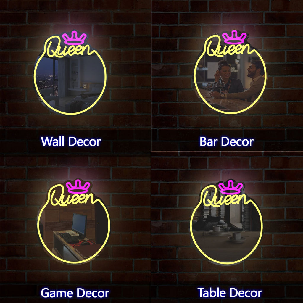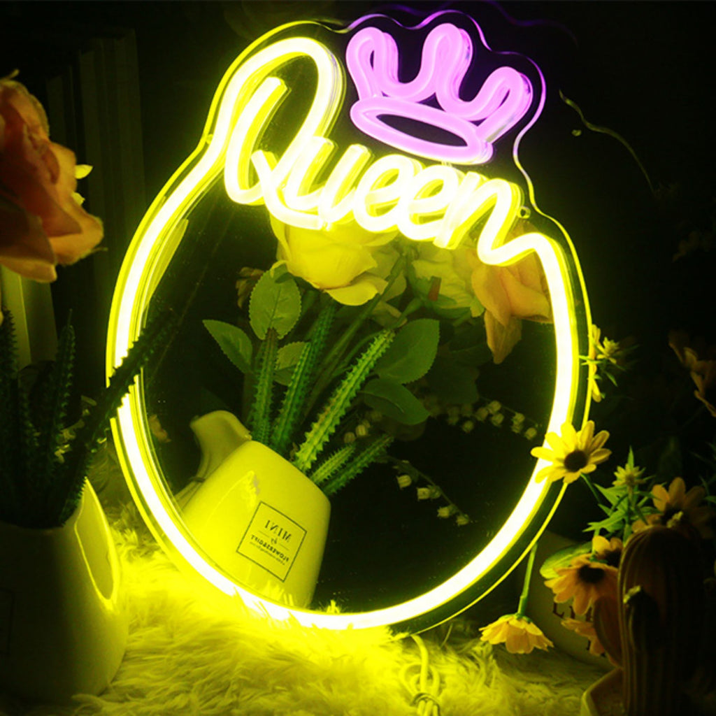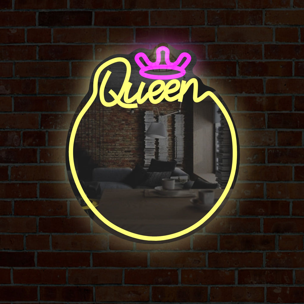 Queen Neon Sign Mirror – Stylish Wall Decor with Adjustable Lighting