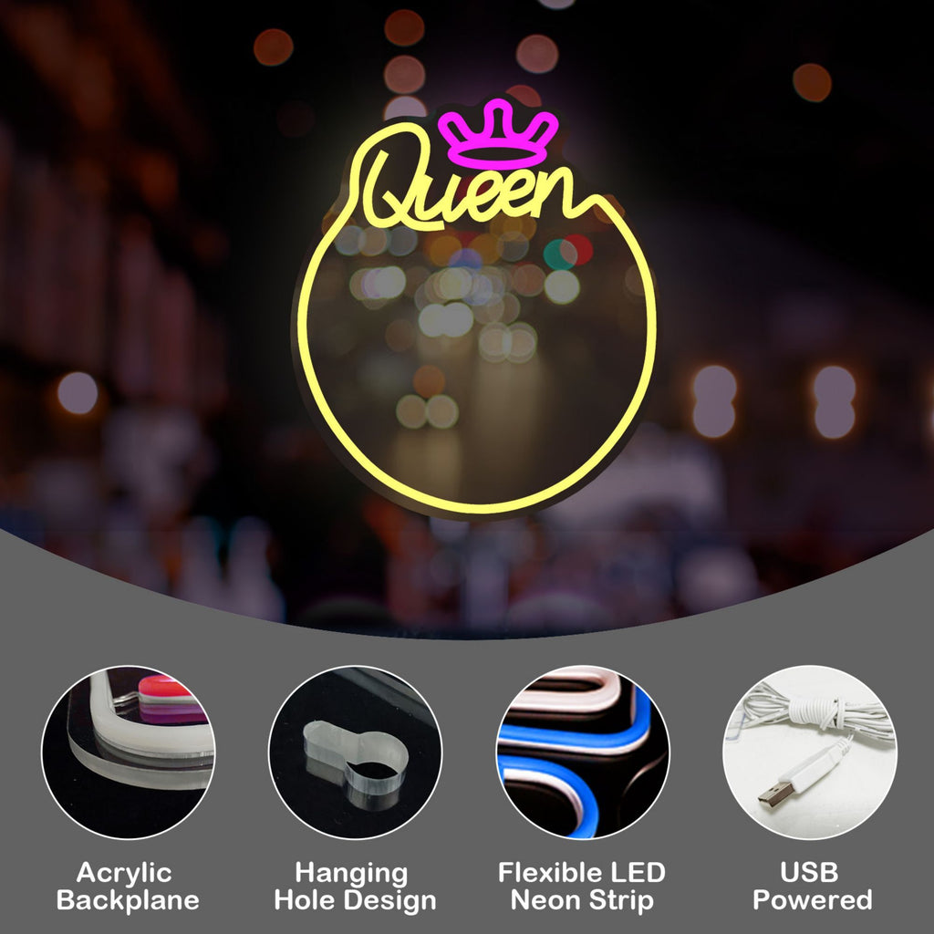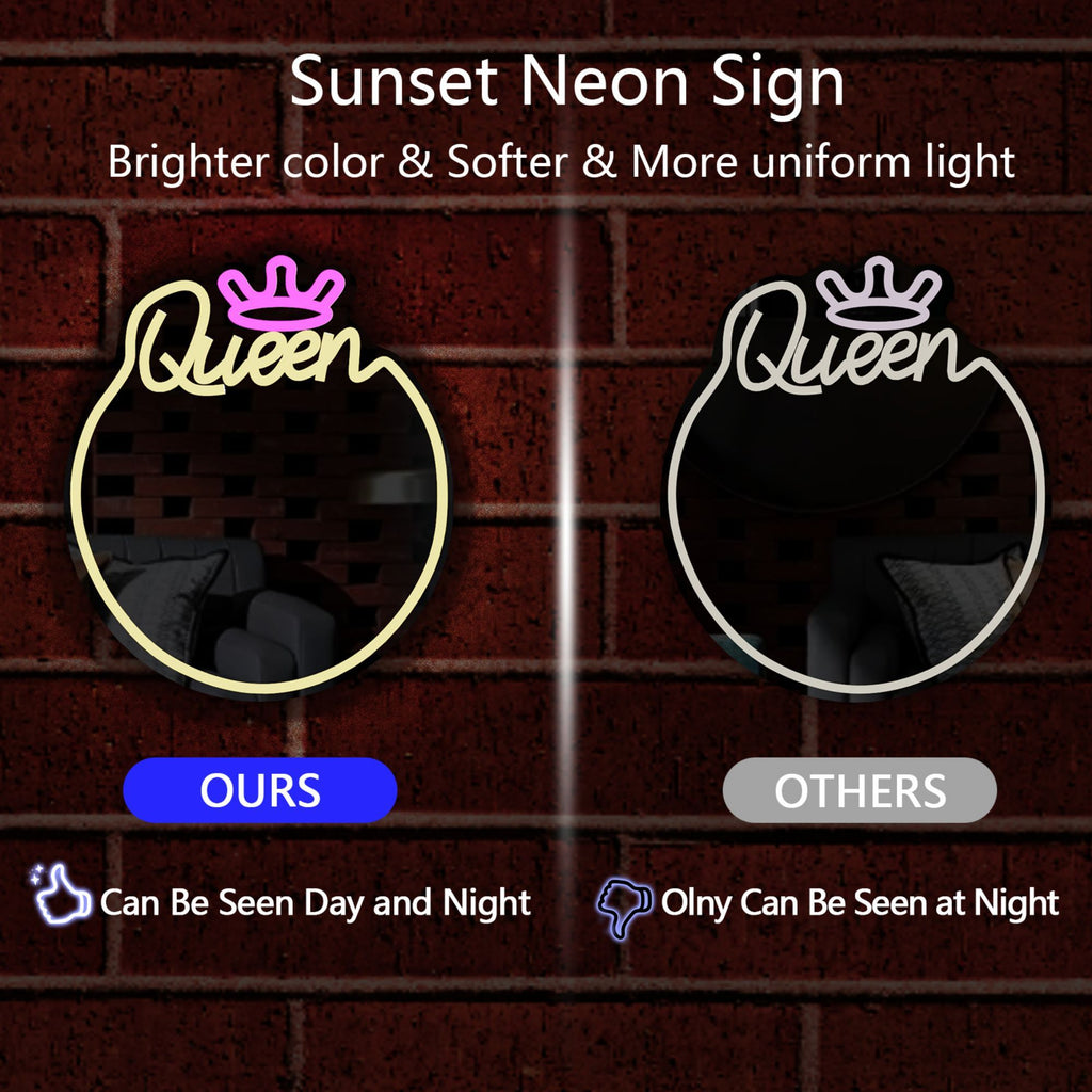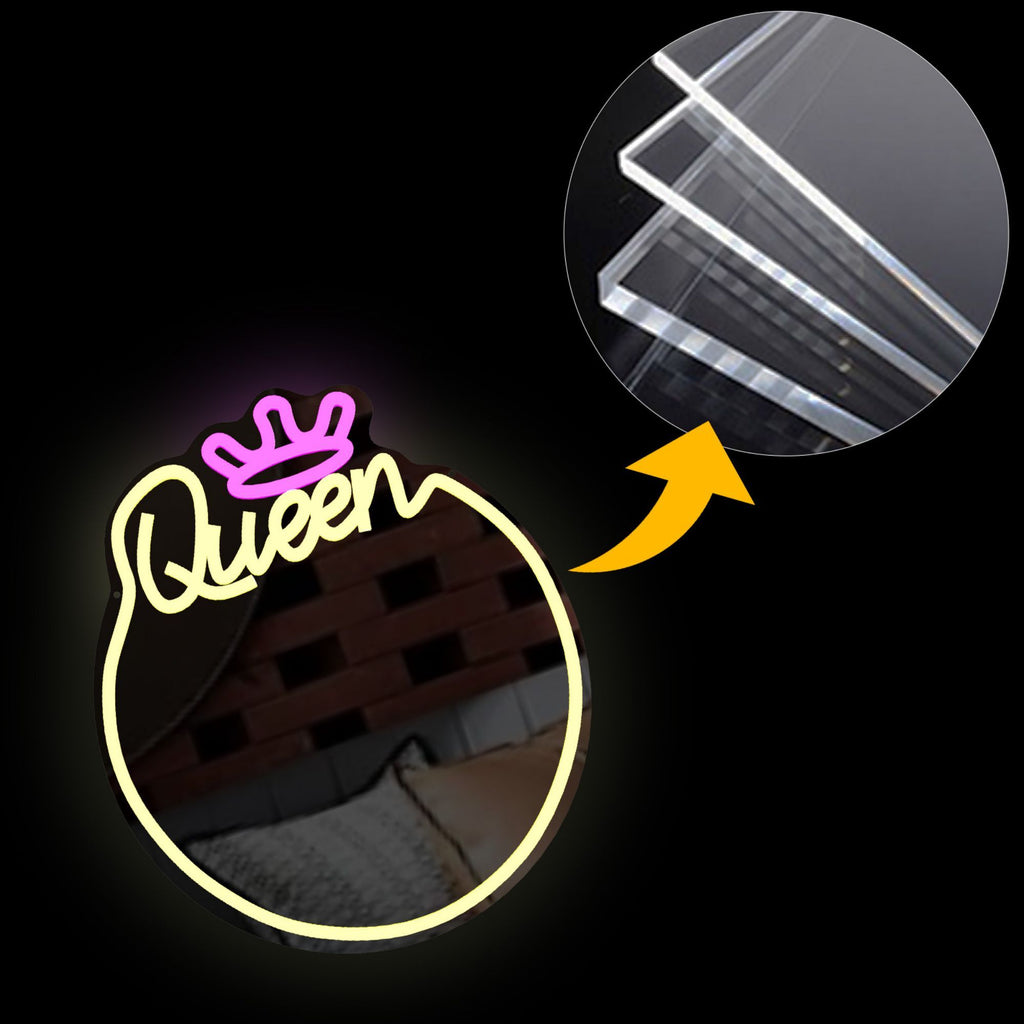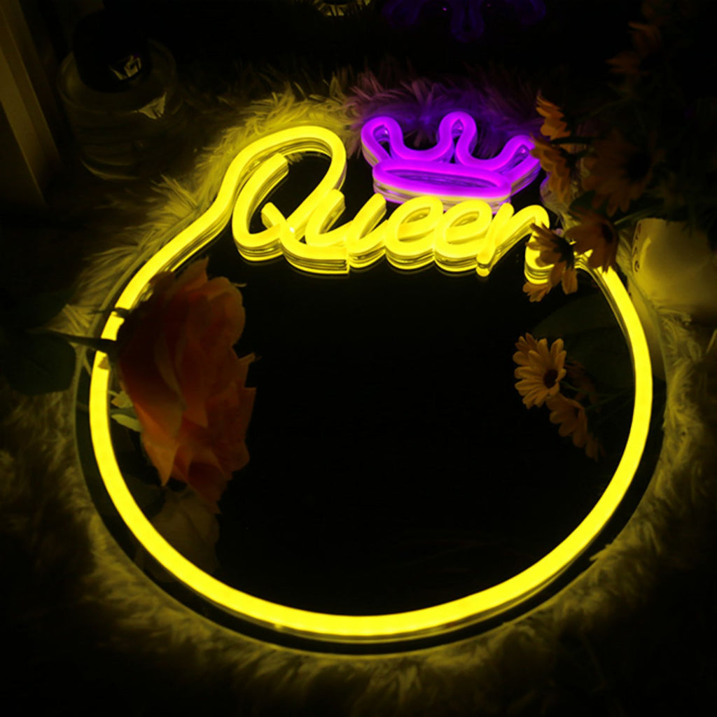 Queen Neon Sign Mirror – Stylish Wall Decor with Adjustable Lighting
