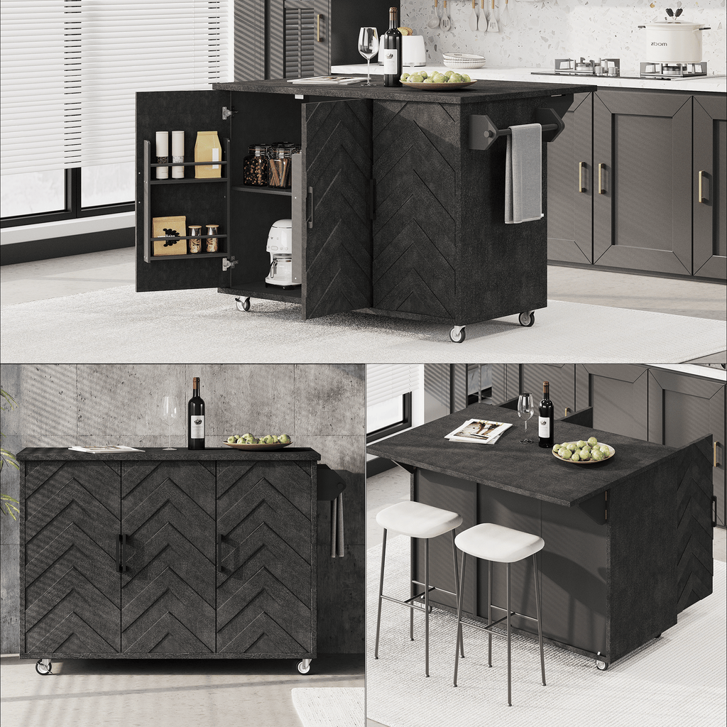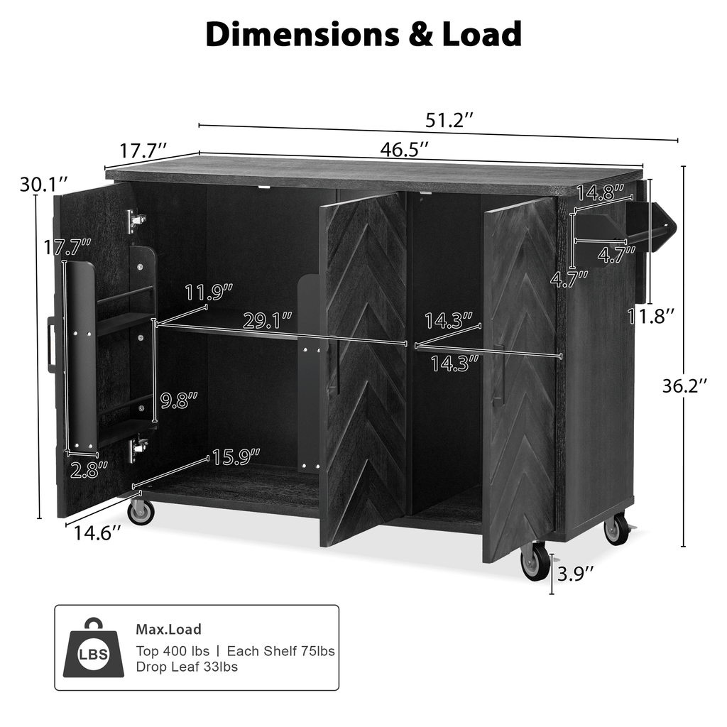 [Large Drop Leaf Design] The portable 46.5" D island features a drop leaf countertop, crafted from 0.98-inch thick premium MDF+Ash veneer, serving as an intelligent and efficient solution for compact kitchens or dining areas. The inclusion of the drop leaf table allows for effortless folding when not in use, thereby optimizing the utilization of available space.
