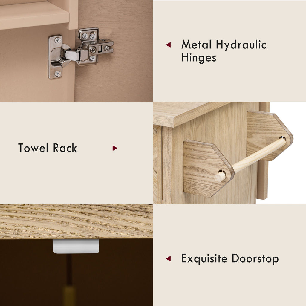 [Ample Storage Space] This kitchen island offers spacious cabinet space to accommodate your various basic items. This will ensure that your countertop space is not cluttered. In addition to this, the adjustable shelves in the cabinets and the internal storage racks behind the doors will allow you to place different sized items according to your needs, and towels have a special side towel rack for hanging. This kitchen storage cart will surely be effective in reducing your kitchen storage stress.