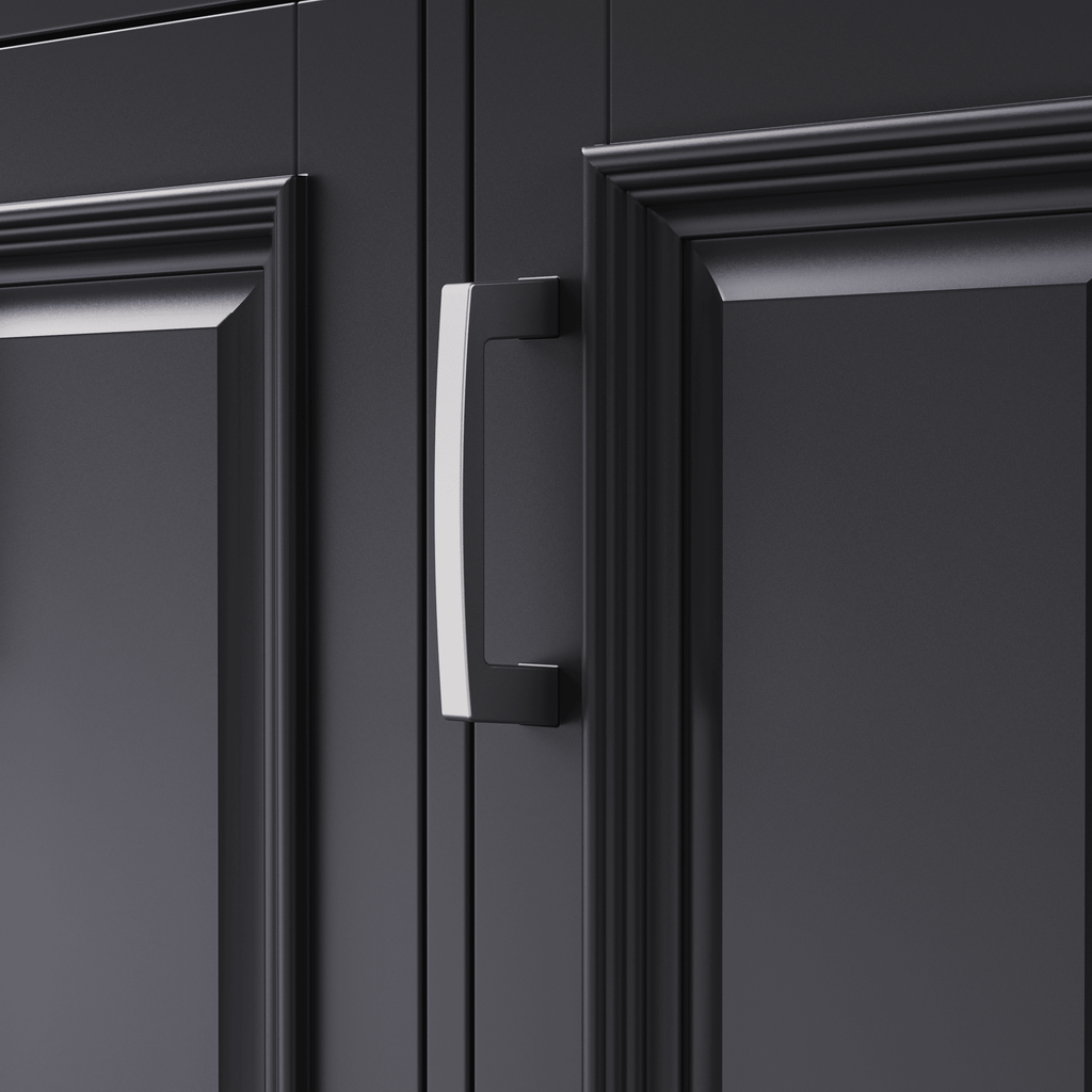 Height-adjustable shelves inside the cabinet doors provide flexibility in accommodating various kitchen items of different sizes.