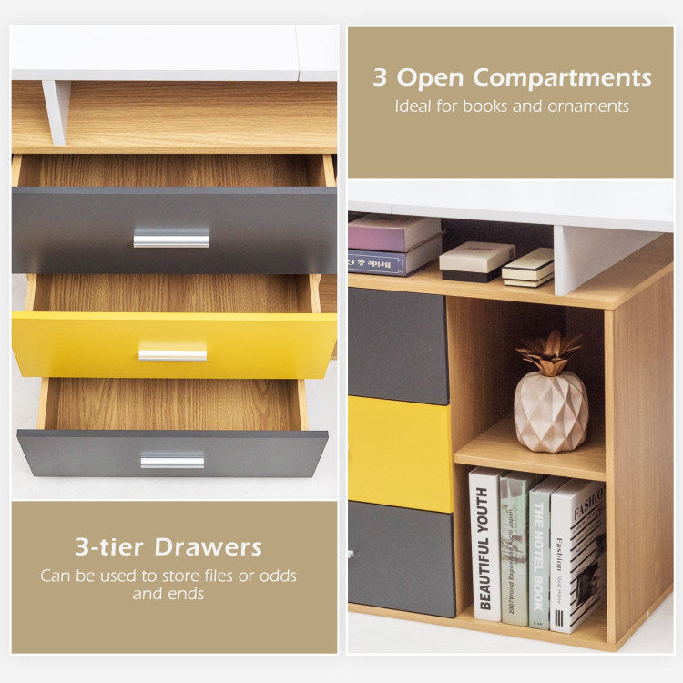 Large Working and Storage Space: Spacious desktop provides large work space for you, while keeping the desktop free from clutter. And it is designed with 3 drawers and 2-tier shelves to store and classify books, files and office supplies, which help you make the room tidy and organized.