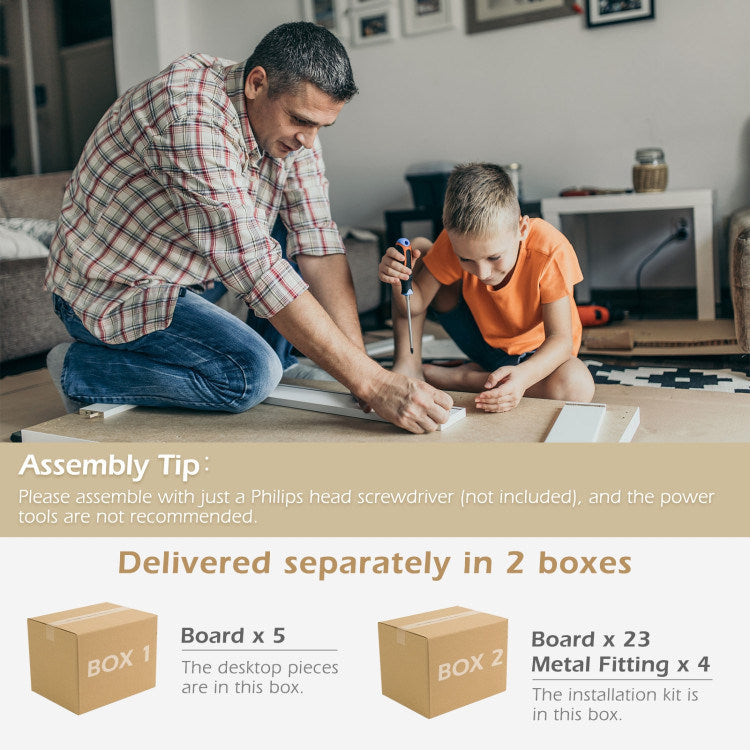 87" long desktop meets the different needs of 2 people; or you can assemble it into a L-shaped desk to fit any corner in your room.