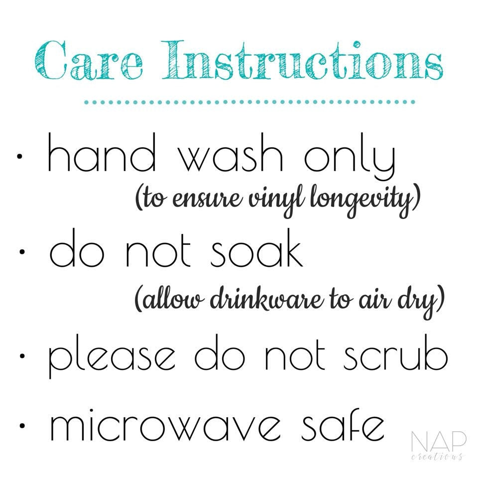 Hand wash to ensure vinyl longevity; do not soak; please allow to air dry.