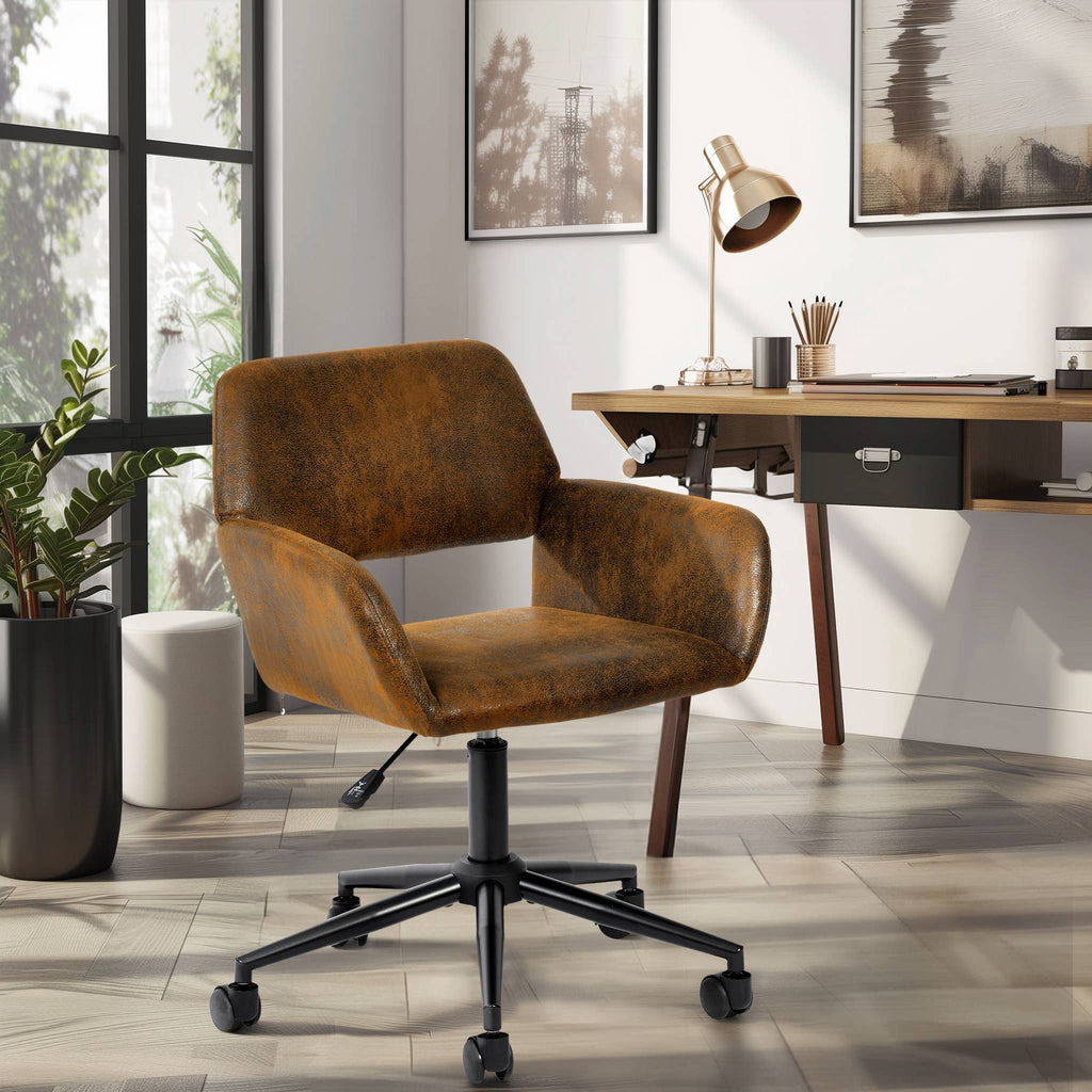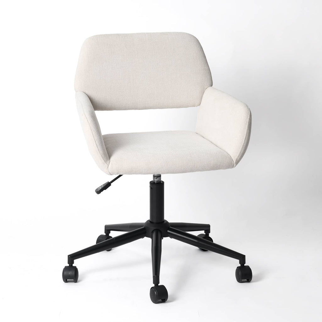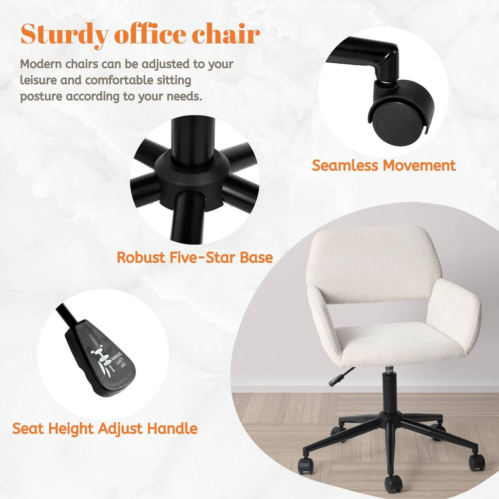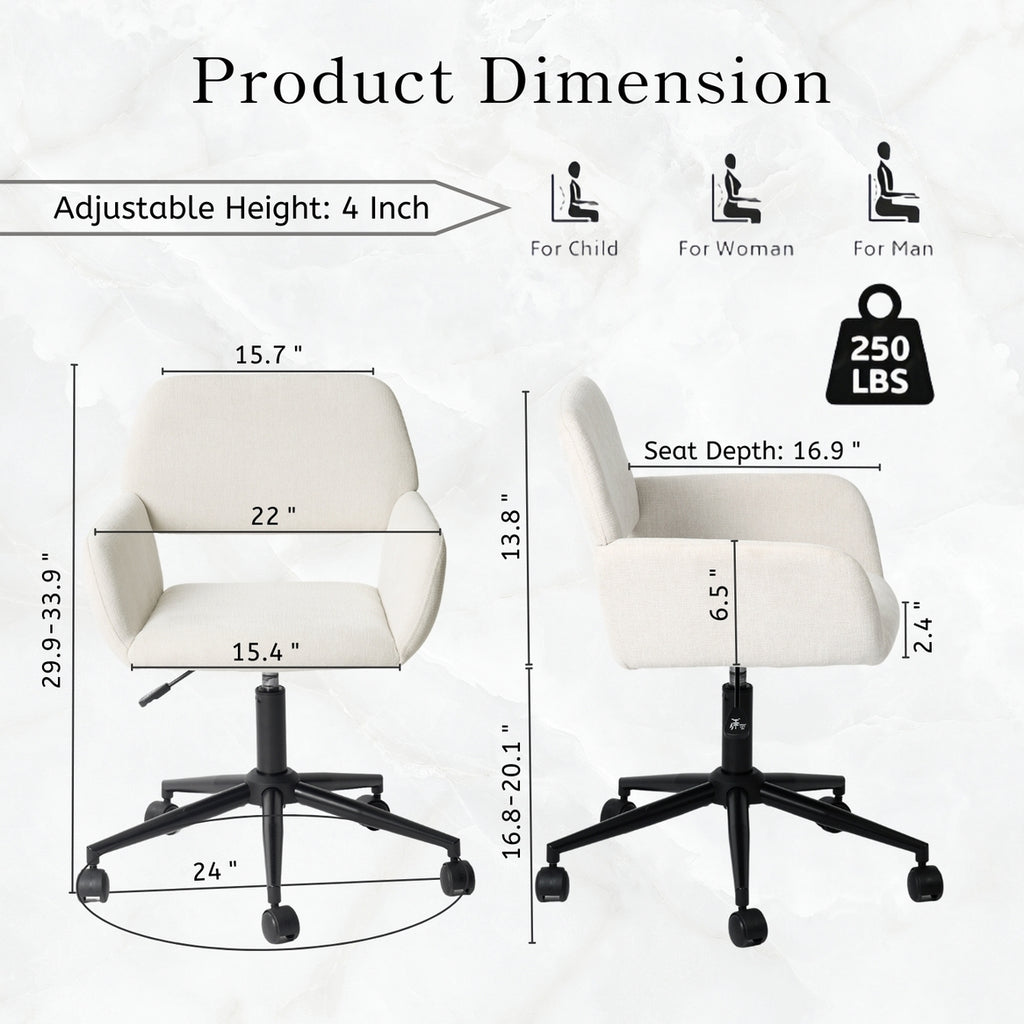 Upgrade your workspace with this set of two versatile task chairs, available in both Suede Brown and Ivory Beige Chenille fabrics. Designed to blend comfort with functionality, these chairs feature a plush padded seat, a supportive elastic backrest, and skin-friendly upholstery for an enjoyable seating experience. The adjustable height (29.9"-33.9") and 360-degree swivel base make these chairs ideal for various users, including children, women, and men, supporting up to 250 lbs. Perfect for home offices, study rooms, or workspaces, they offer stylish solutions for daily comfort and productivity.