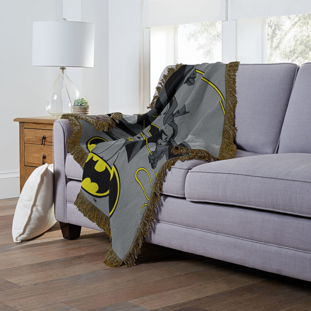 Detailed, triple woven throw blanket; decorative fringes around all edges; made in America