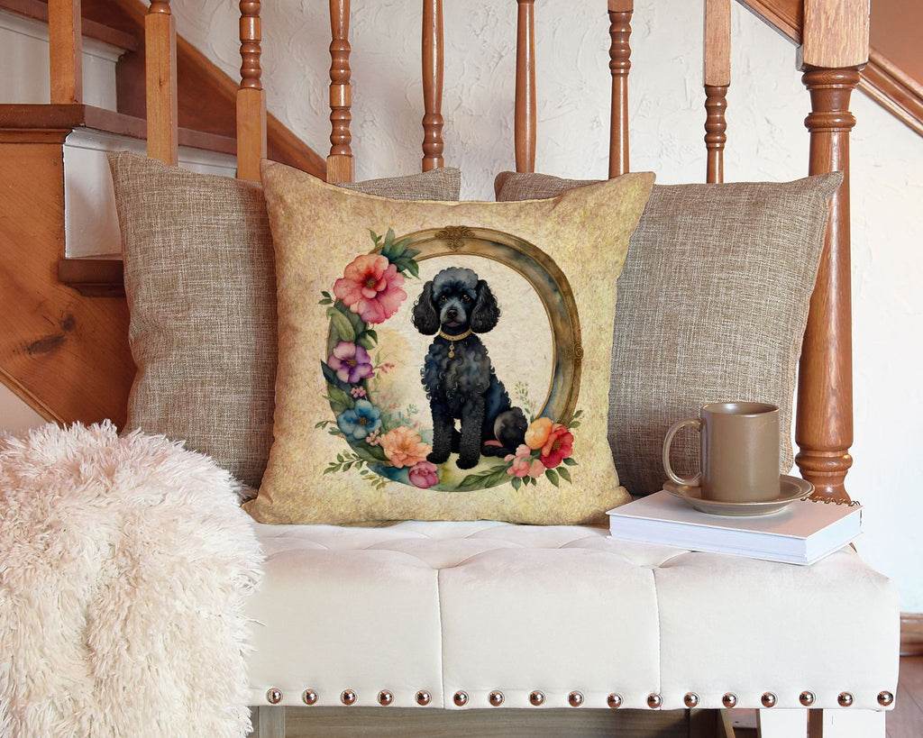 Throw Pillow featuring breed specific Poodle artwork. Add a touch of vibrancy and comfort to your outdoor seating with Caroline's Treasures Fabric Decorative Pillow. Measuring approximately 14 inches by 14 inches, this outdoor pillow is crafted to elevate the appeal of your patio furniture, infusing it with vivid color and artistic flair. The pillow includes a 100% Polyester Fabric sham filled with a quality pillow form to provide superior comfort. Innovatively made from our brand new material, specifically woven for its water resistance, this pillow is designed for durability. The soft canvas fabric offers versatility in use, fit for your indoor couch or your outdoor patio, porch, or veranda. The fabric is dyed with colorfast dyes built for resilience against weather conditions, ensuring the pillow retains its beauty over time. Constructed by sewing three fabric pieces to create a sham, the polyester insert is then nestled inside to form the pillow, resulting in an overstuffed pillow that maintains its shape. Both the sham and the pillow insert are proudly made in the United States. As the pillows are handcrafted, there may be minor variations in size, further enhancing their unique charm. Experience comfort in style with Caroline's Treasures Fabric Decorative Pillow.