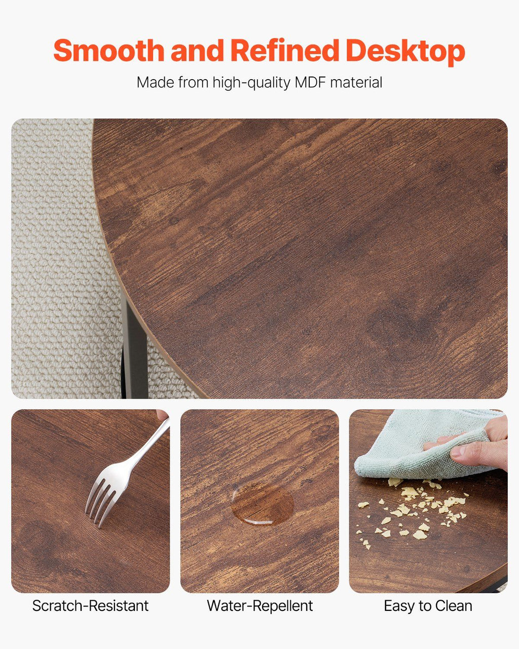 Spacious Desktop: The vintage brown tabletop of this nesting table is made from high-quality MDF material. It has an elegant design and is scratch-resistant, wear-resistant, and easy to clean, making it ideal for placing various items