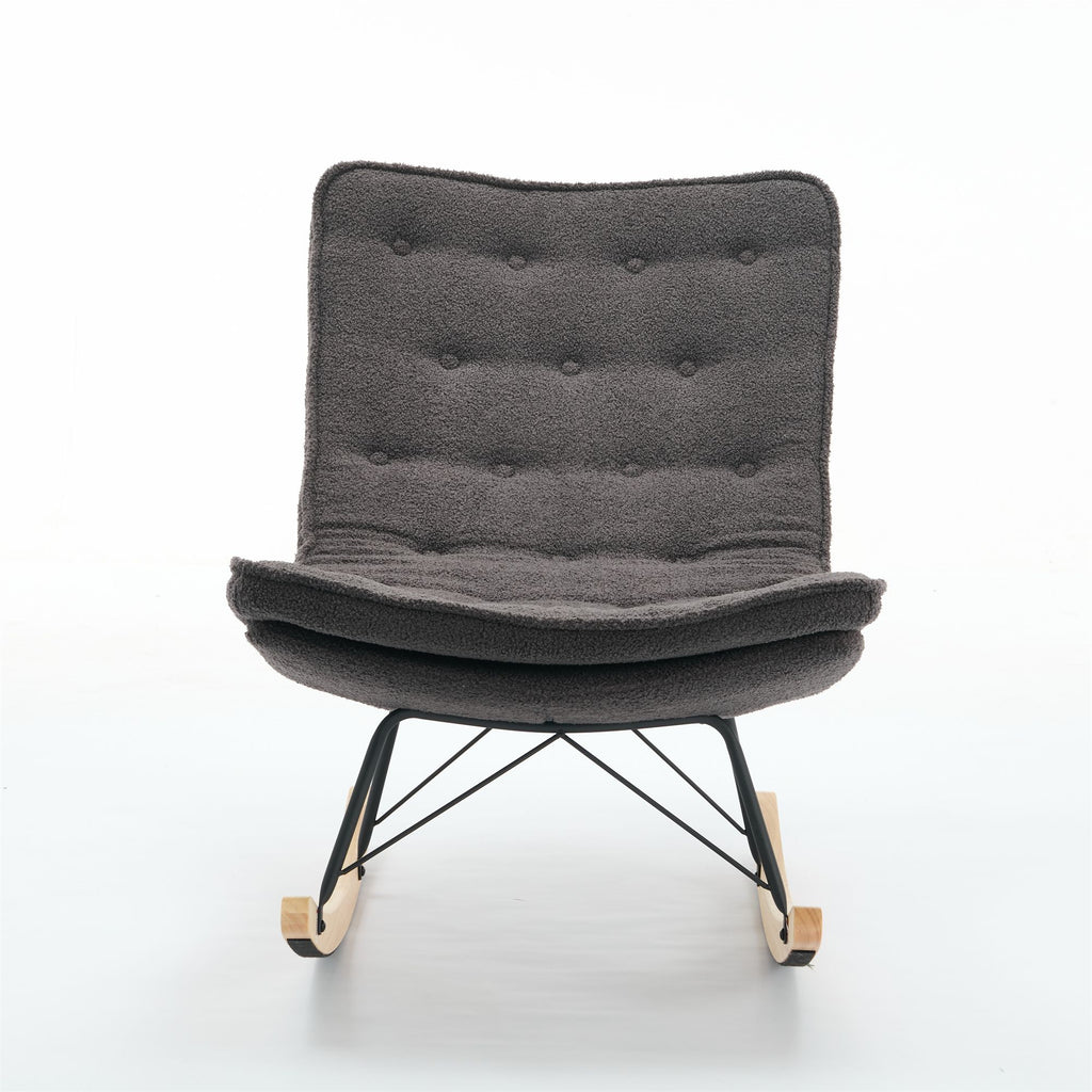 [Comfortable and Strong Material] The rocking chair surface is covered with skin-friendly cotton or Teddy fabric, which is very soft. The entire frame is made of solid wood and metal and can support up to 250 pounds. High Backrest and Comfortable Armrest make you feel comfort and safety,the thick sponge cushion makes the sitting position very comfortable,and the backrest is ergonomically curved,which can perfectly relax your back.