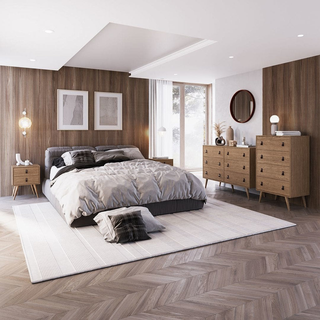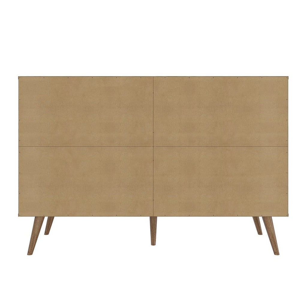 Streamlined design and stunning; modern details come together in one clean and extraordinary piece. The Amber double dresser brings mid-century modern design and a sleek and unique look; that updates any bedroom. Careful; quality craftmanship is seen throughout the piece; with solid wood legs and clean lines. Six drawers offer ample storage space. Faux leather button pull loops replace the standard handle; offering a fun and stylish twist to tradition. Offered in four shades; white; nature; white and blue; and blue and nature to compliment any styled home!