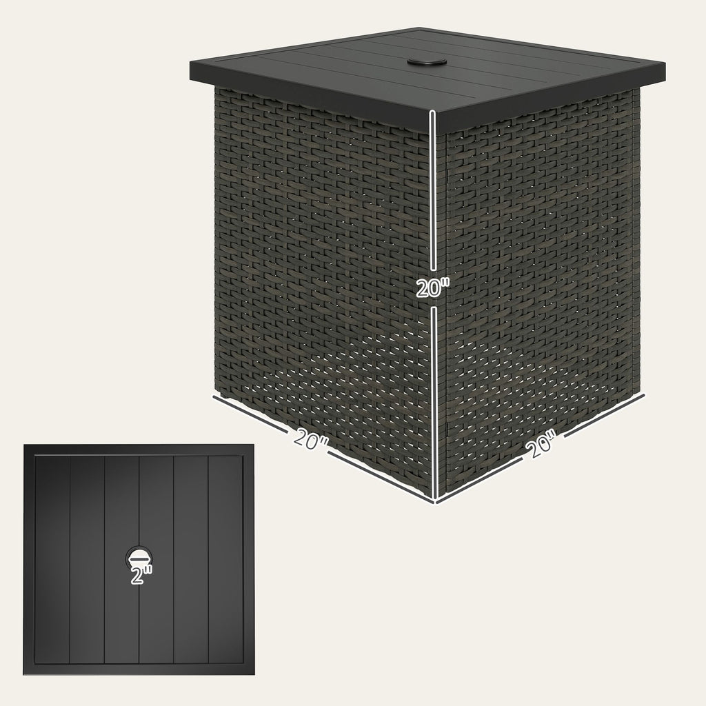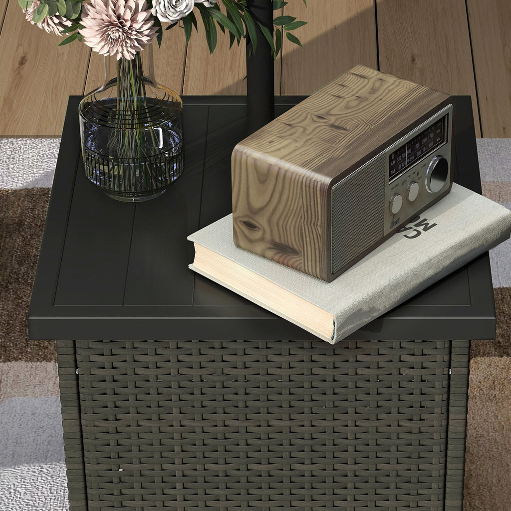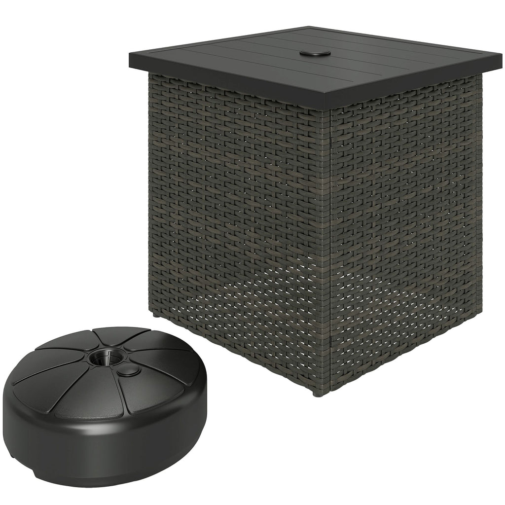 Savor sunny days with the Outsunny patio table with umbrella mount! Designed with a built-in umbrella mounting hole to keep you cool in the shade, this table features a robust PE rattan frame for lasting durability. Great for poolside lounging or patio gatherings, it's your go-to spot for everything from morning coffee to evening cocktails. Relax in style and make every outdoor moment more enjoyable.