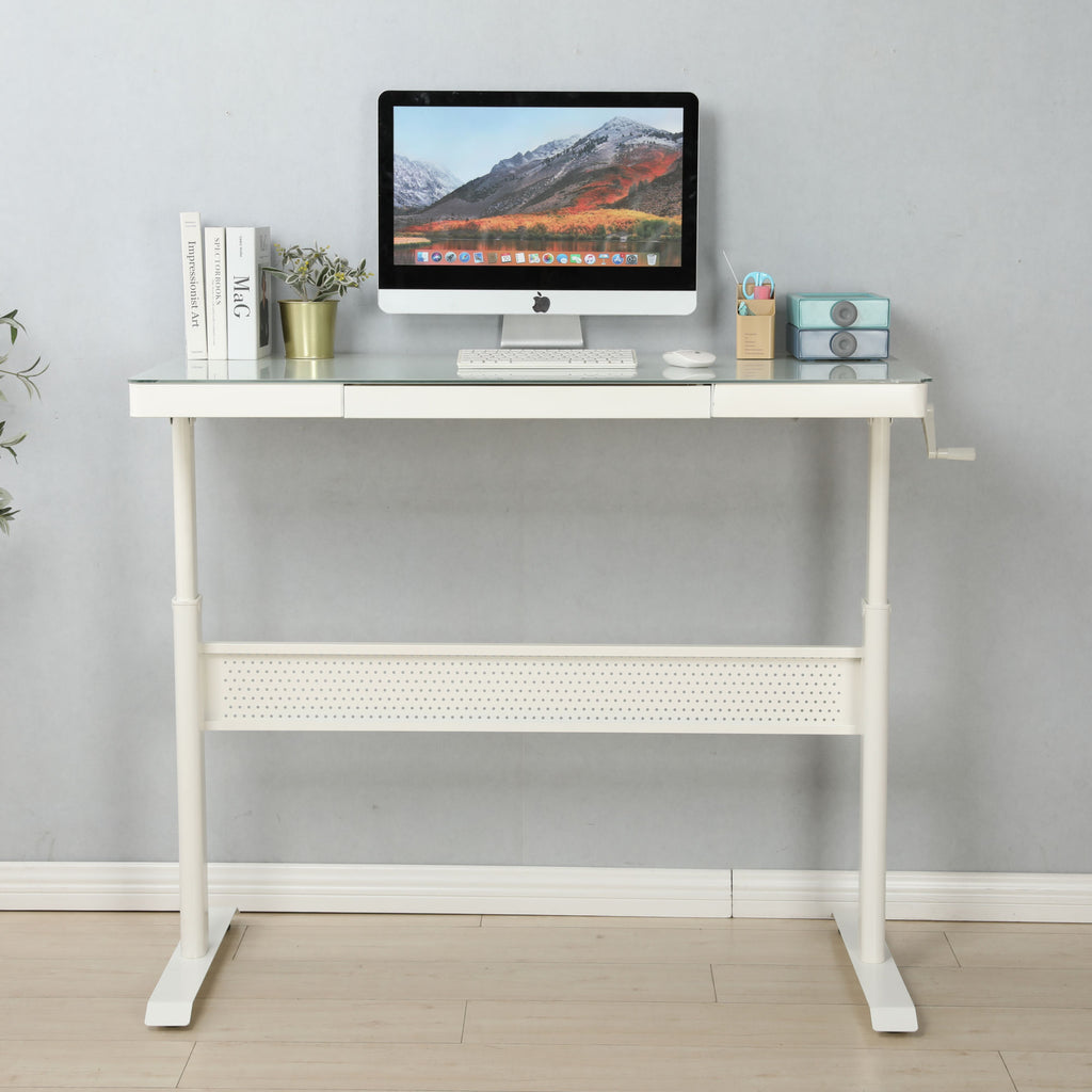| Product Name | Tempered Glass Standing Desk with Metal Drawer 48 x 24 Inches ; Adjustable Height Stand up Desk; Sit Stand Home Office Desk; Ergonomic Workstation |