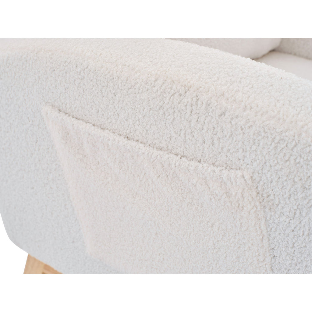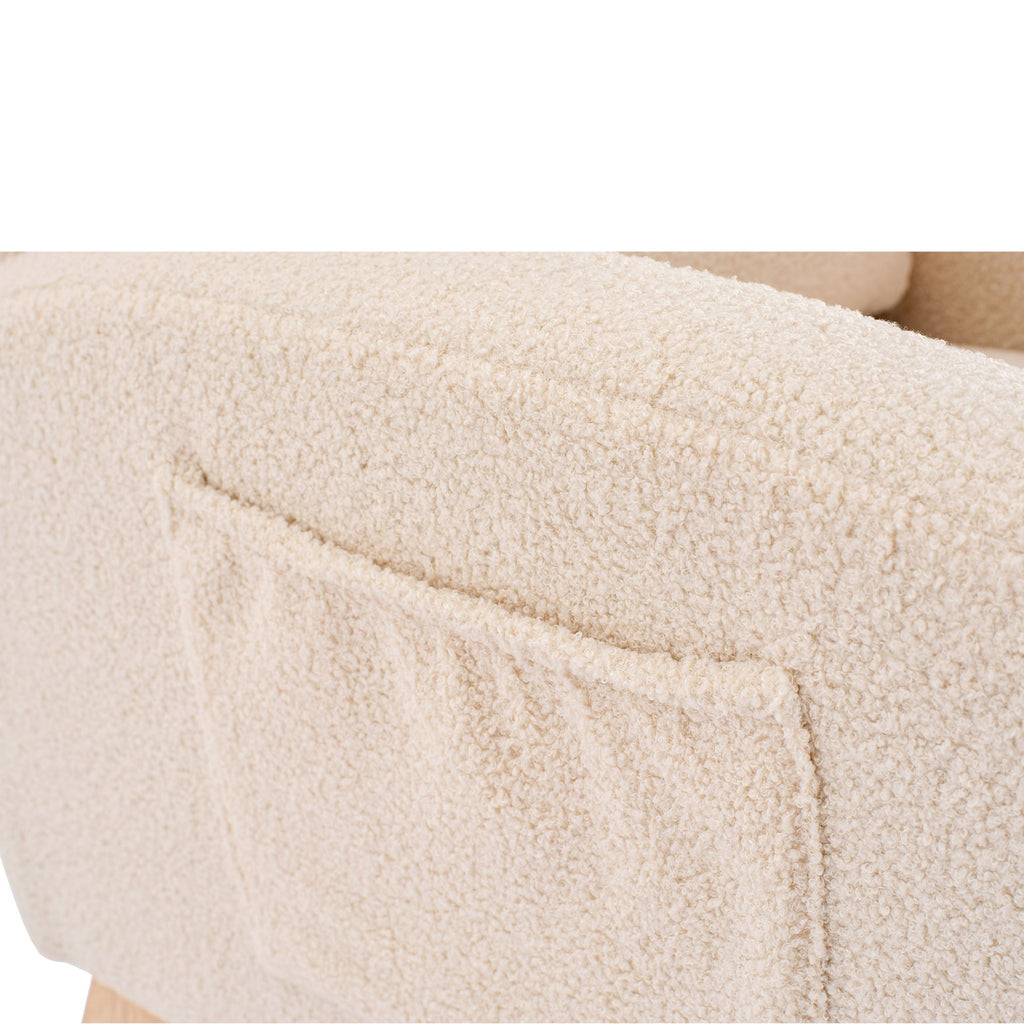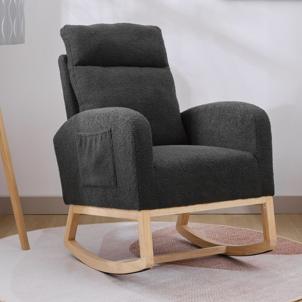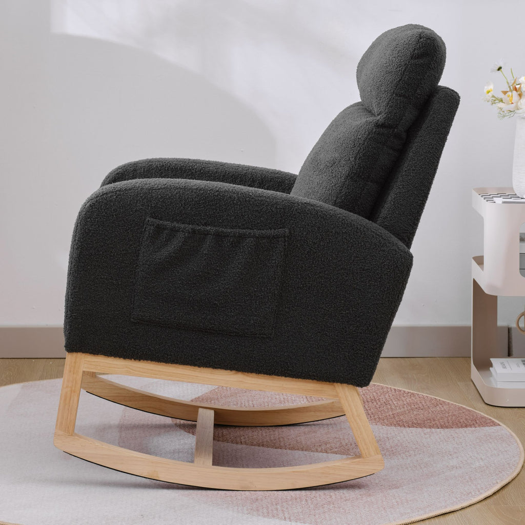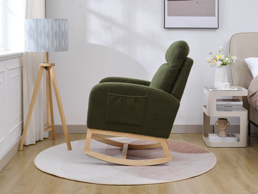 Soft Fabric & Practical Side Pocket: Covered with high quality polyester fabric, the surface is breathable and easy to maintain. The simple color and smooth lines make this kids rocking chair very stylish and chic. What's more, there is a pocket on the side of the armrest, which is convenient for you to put magazines and TV controller.
