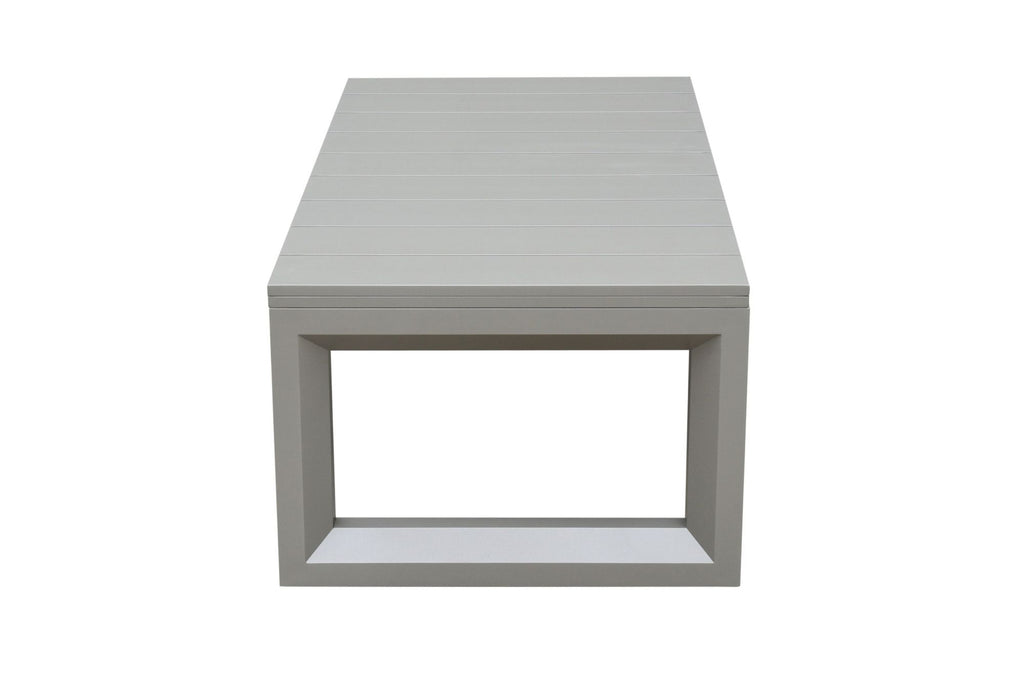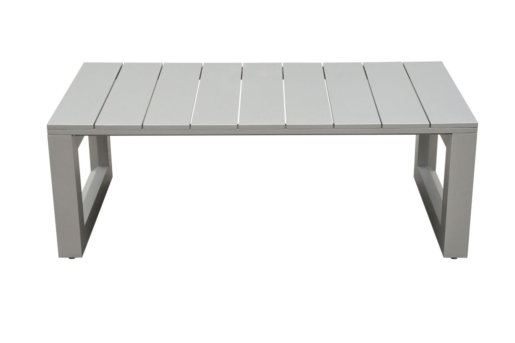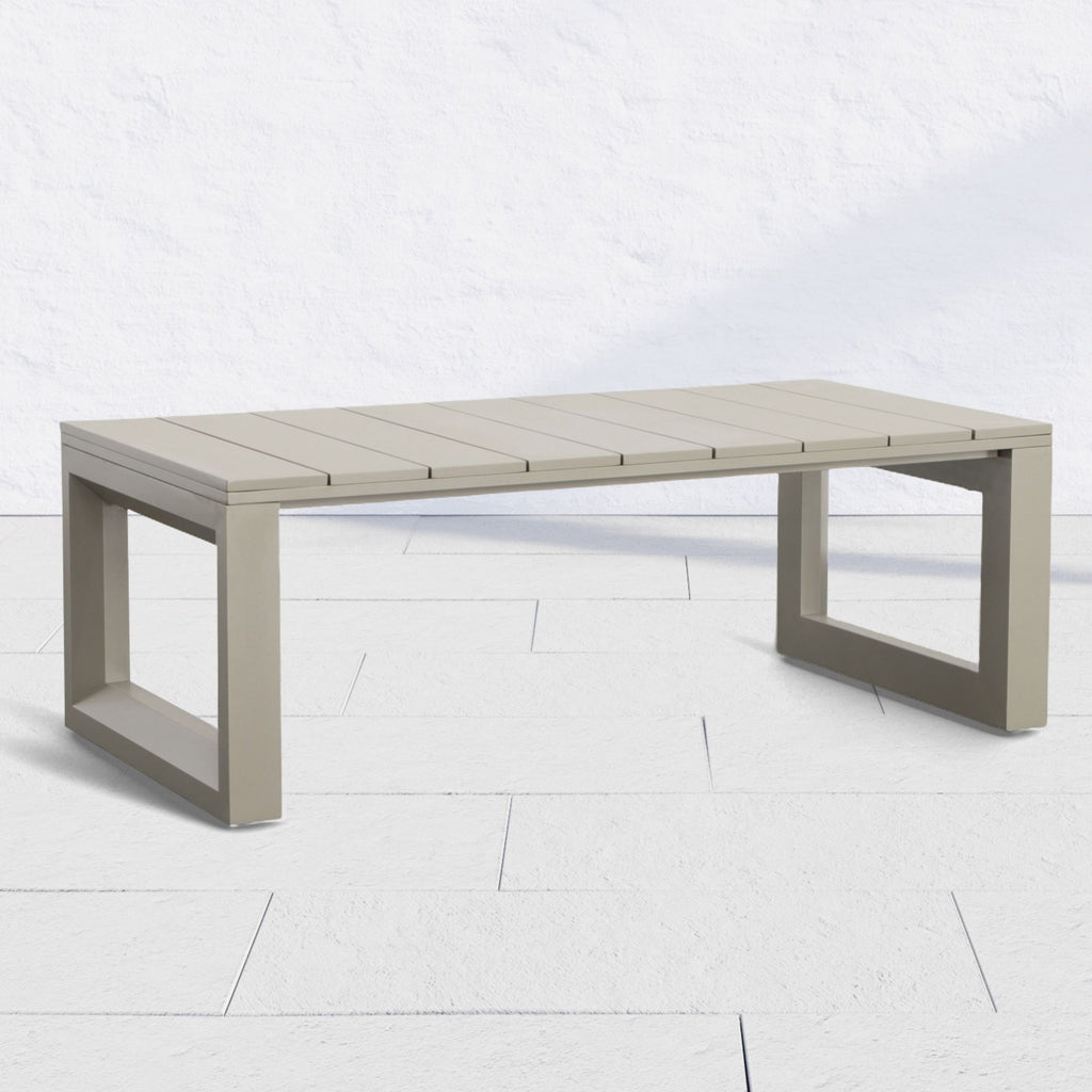DimensionsCarton Dimensions L 49.25 x W 26.4 x H 5.9Features-Aluminum frame is rust and heat resistant-Aluminum frame is light weight and sturdy, easy to move around, and more durable than steel items which are heavy and more likely to rust than aluminum-Mission-style vertical slat top fits many design styles -Special tube profile creates a clean and stylish look-Adjustable levelers balance table on uneven surfacesProduct DescriptionDesigned with meticulous attention to detail, the Dalilah Patio Cocktail Table features beveled end panels that frame a striking modern geometric pattern. Its sleek and sophisticated design creates a focal point that effortlessly enhances the aesthetic appeal of your outdoor space.While the table's refined appearance may resemble an indoor item, it is purposefully built for the outdoors. The rust-resistant aluminum frame ensures long-lasting durability, while its scratch and weather-resistant properties allow it to withstand the elements. Embrace worry-free enjoyment, knowing that your Dalilah Patio Cocktail Table will maintain its beauty and integrity over time.Elevate your patio with the Dalilah Patio Cocktail Table and let it become the centerpiece of your outdoor oasis. Immerse yourself in its contemporary charm and indulge in the beauty of its design. Experience outdoor living at its finest, where style meets durability, and create cherished memories in a space that reflects your impeccable taste.