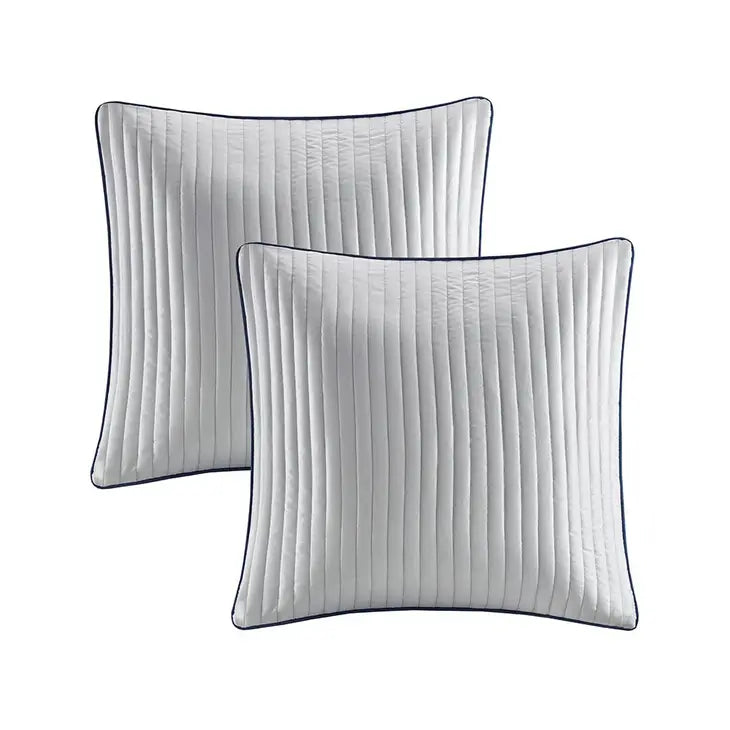 - Comforter/Sham: 100% polyester jacquard, 1/2" polyester charmeuse piping, 100% brushed polyester reverse.