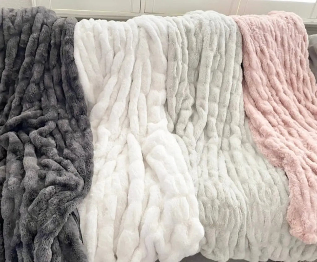 Wrap yourself in luxury with the Soft Ruched Faux Fur Throw Blanket, our most popular and best-selling cozy essential. Designed with an elegant ruched faux fur texture on one side and an ultra-soft minky backing on the other, this throw combines style, warmth, and indulgent comfort in one beautiful piece.