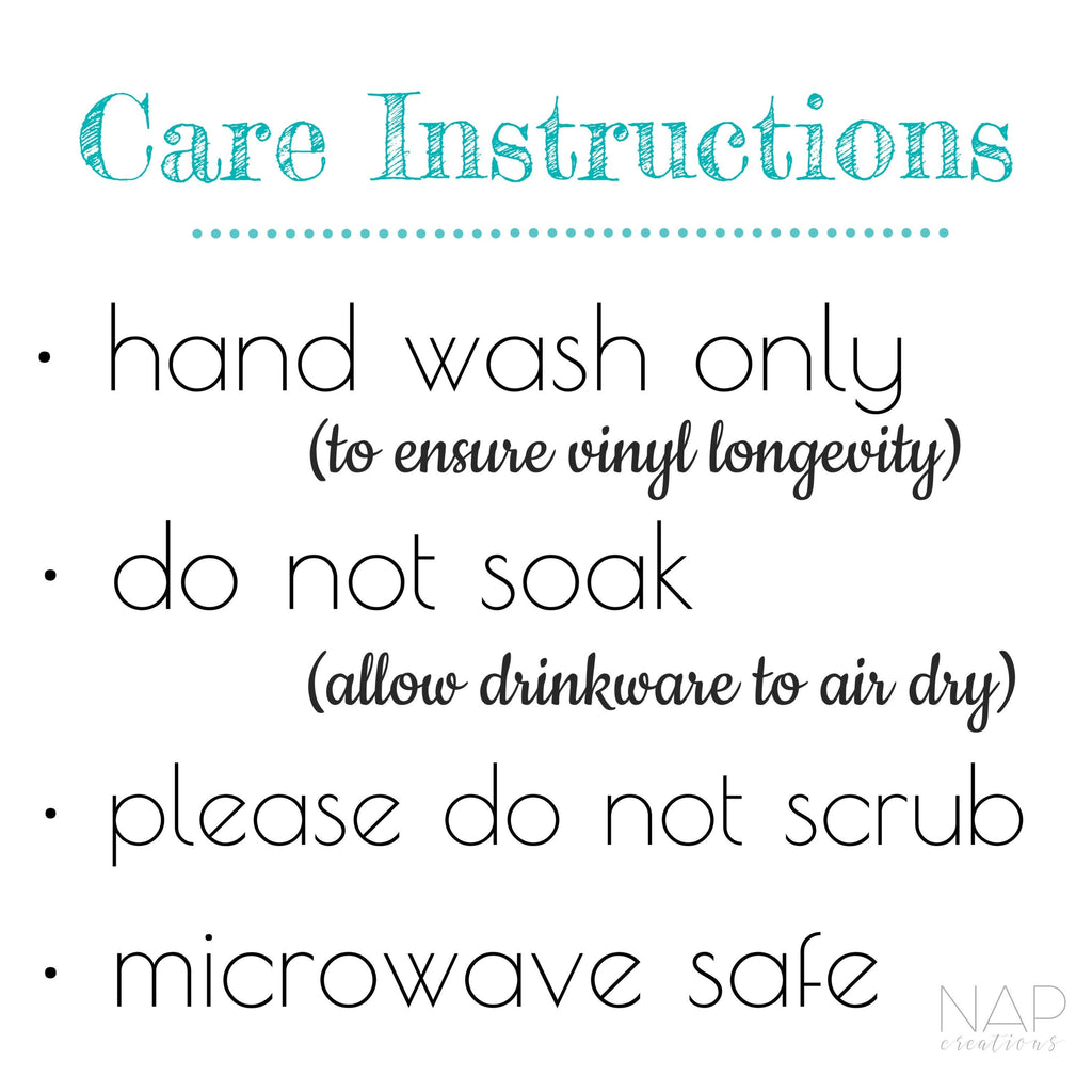 Hand wash to ensure vinyl longevity; do not soak; please allow to air dry.