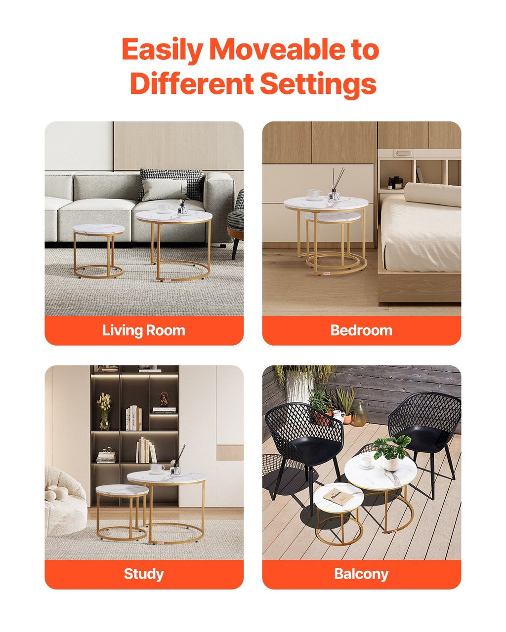 Spacious Desktop: The white marble-patterned tabletop of this nesting table is made from high-quality MDF material. It has an elegant design and is scratch-resistant, wear-resistant, and easy to clean, making it ideal for placing various items
