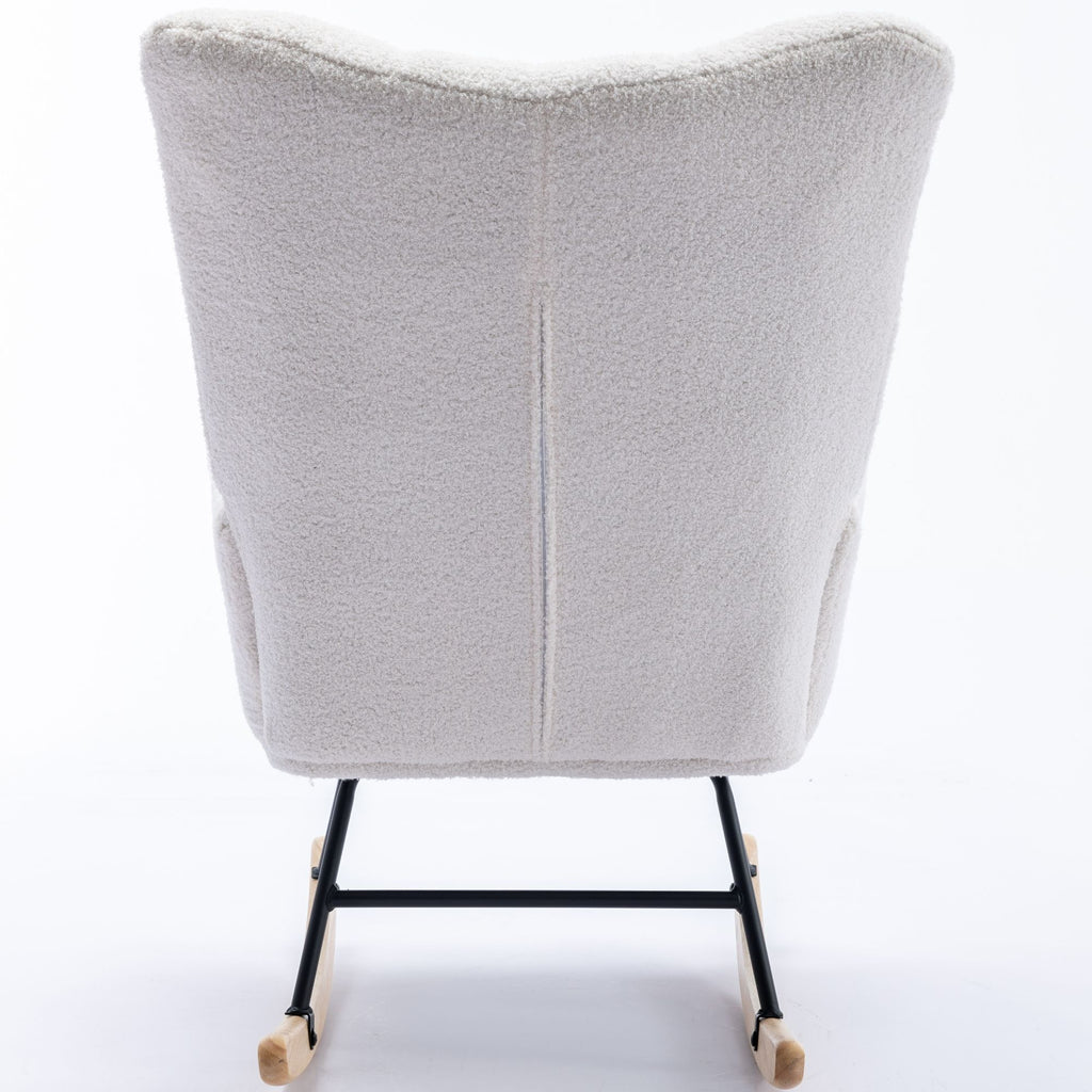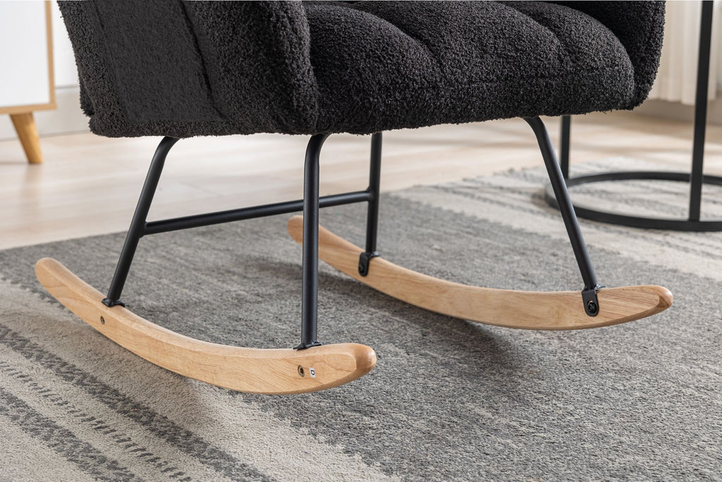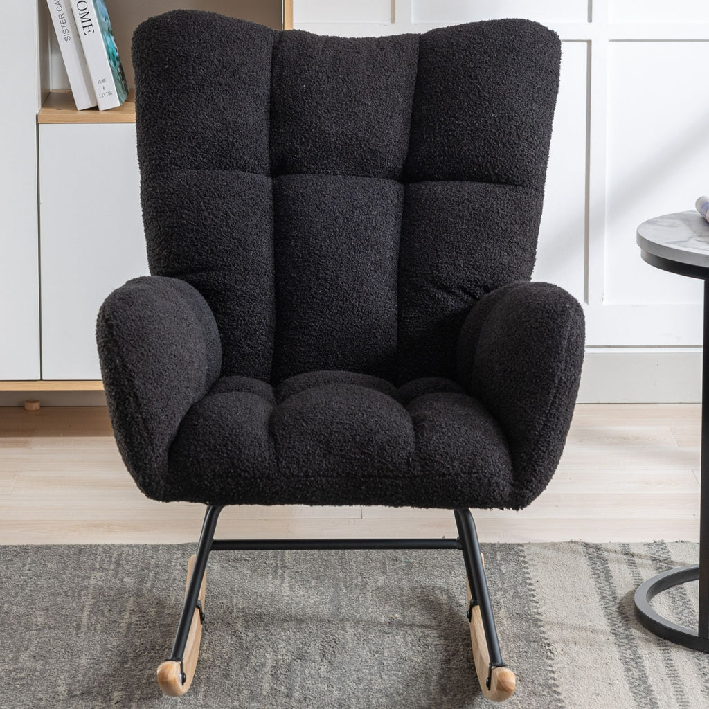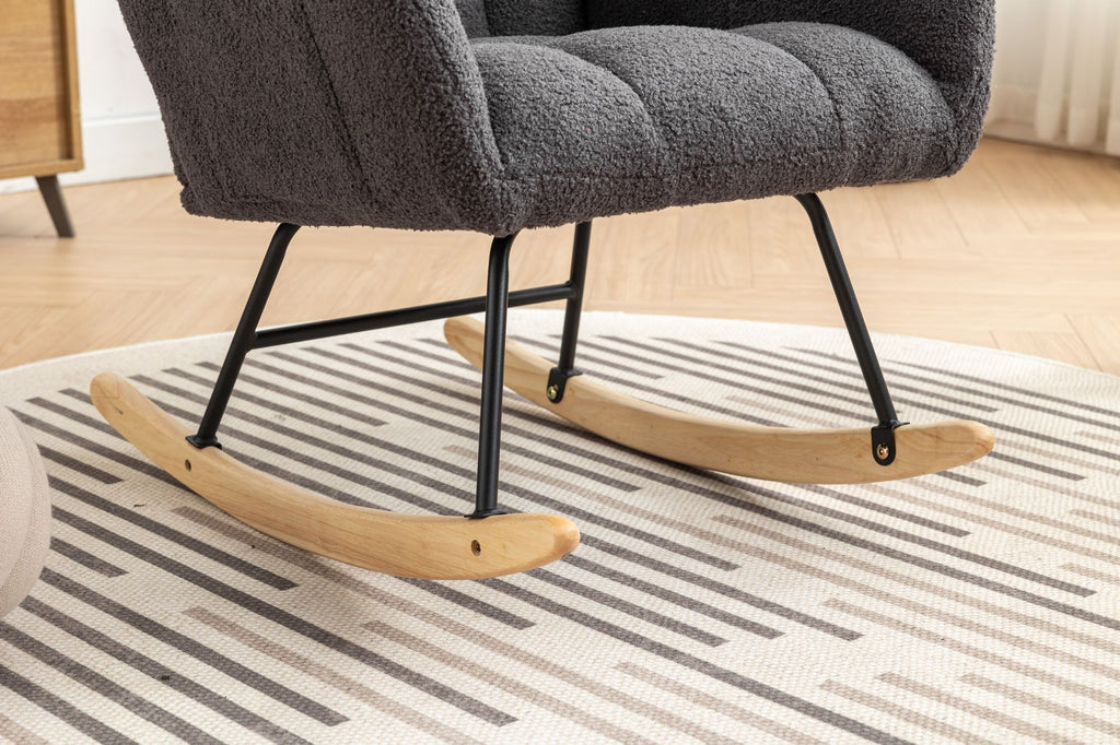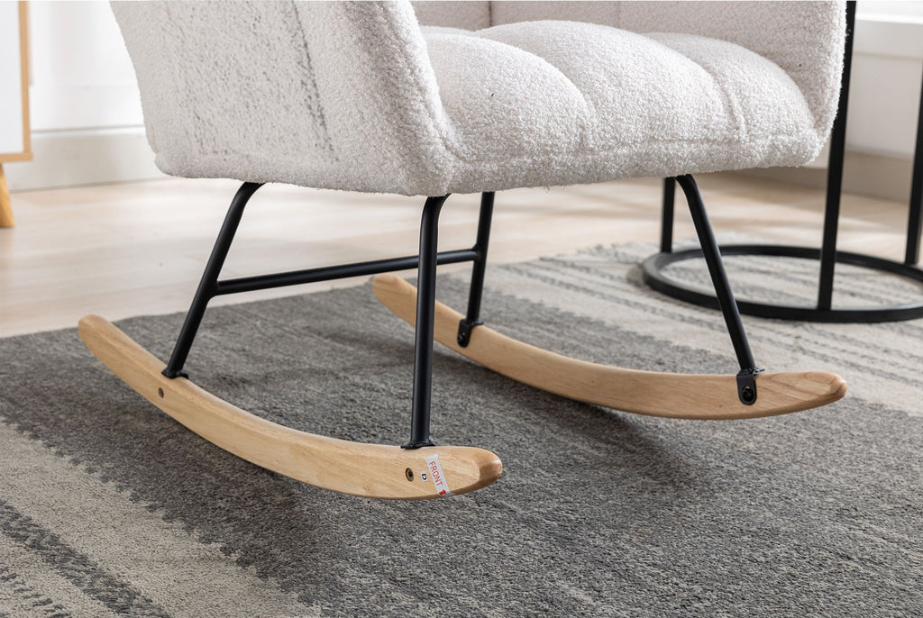 Exceptional Comfort: Upholstered in soft teddy fleece and filled with high-density foam, this modern rocking chair offers a luxurious seating experience. The generously sized seat provides ample space and ensures ultimate comfort, making it perfect for relaxation.