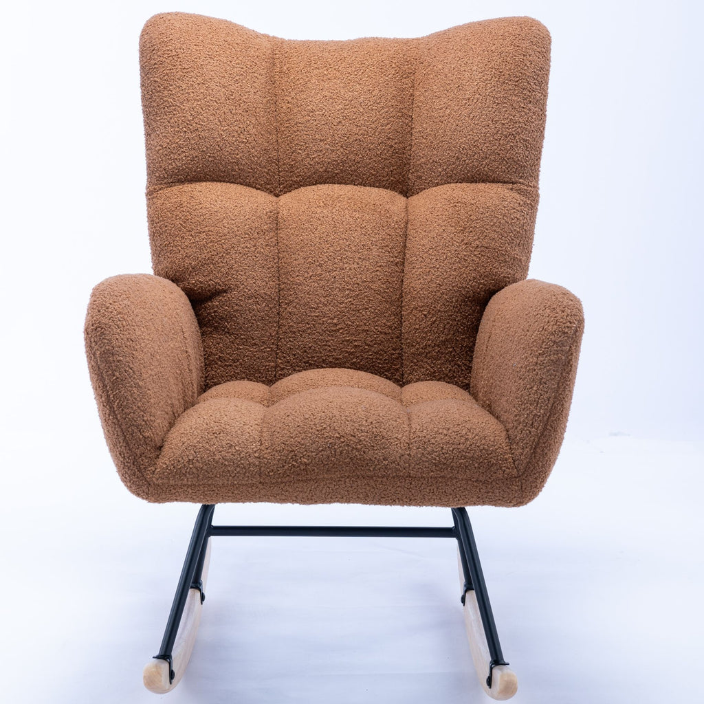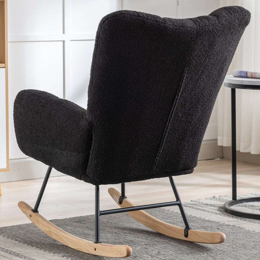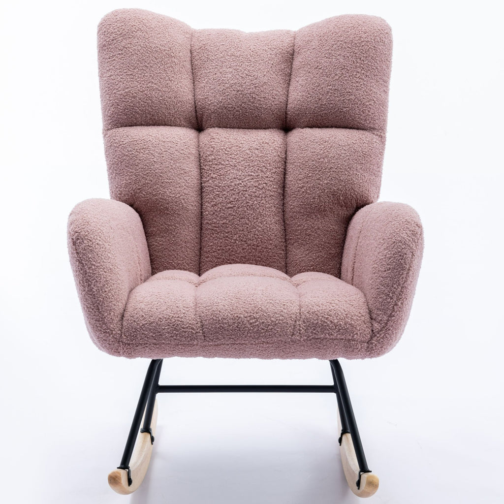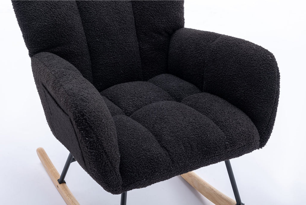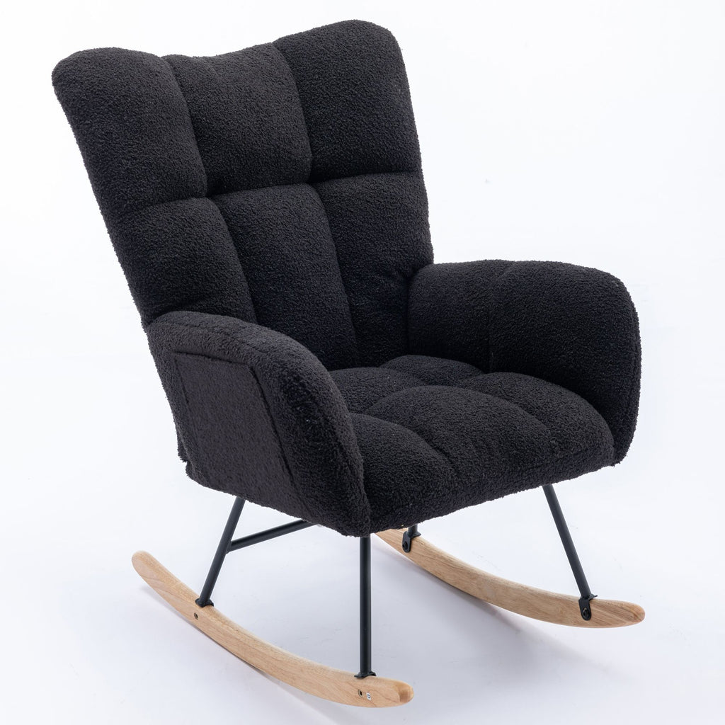 Exceptional Comfort: Upholstered in soft teddy fleece and filled with high-density foam, this modern rocking chair offers a luxurious seating experience. The generously sized seat provides ample space and ensures ultimate comfort, making it perfect for relaxation.