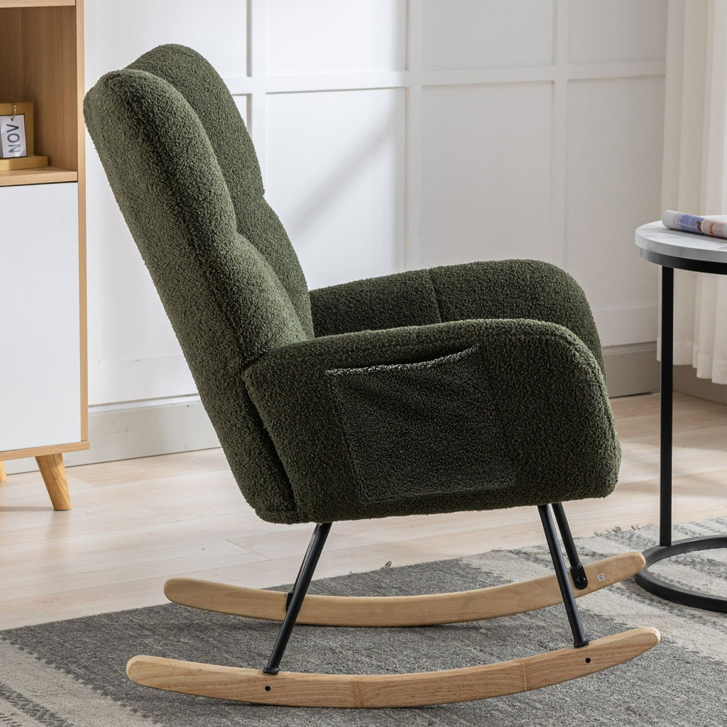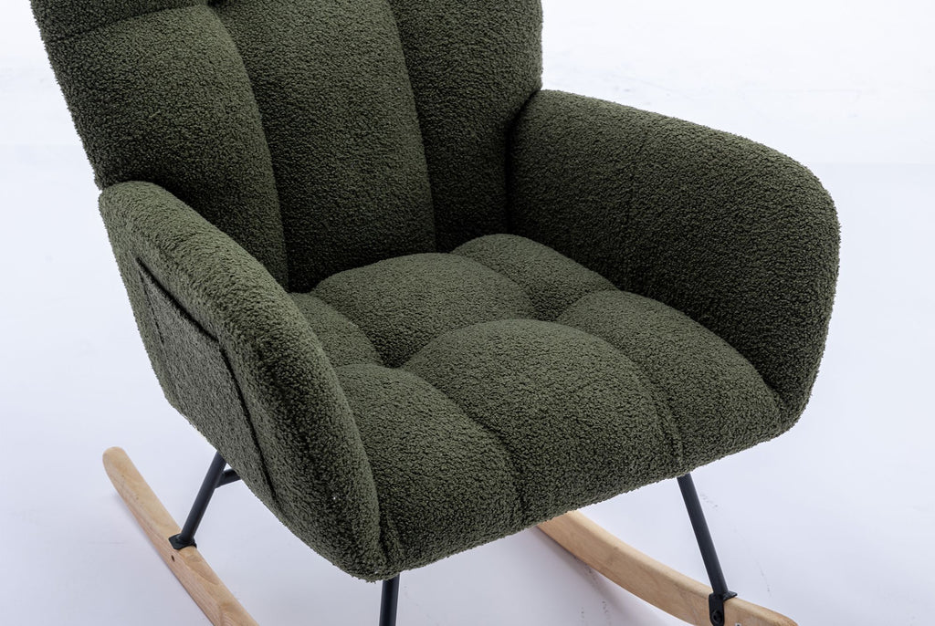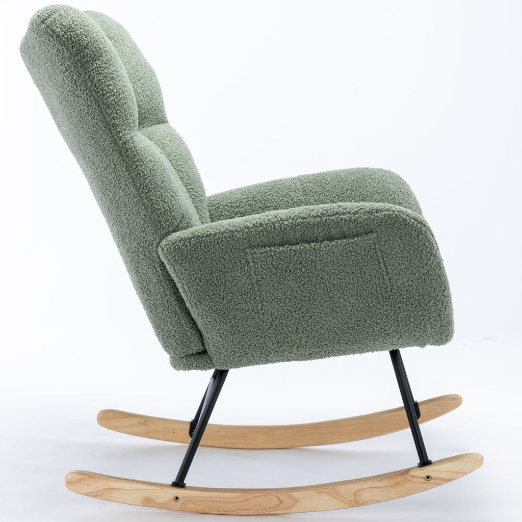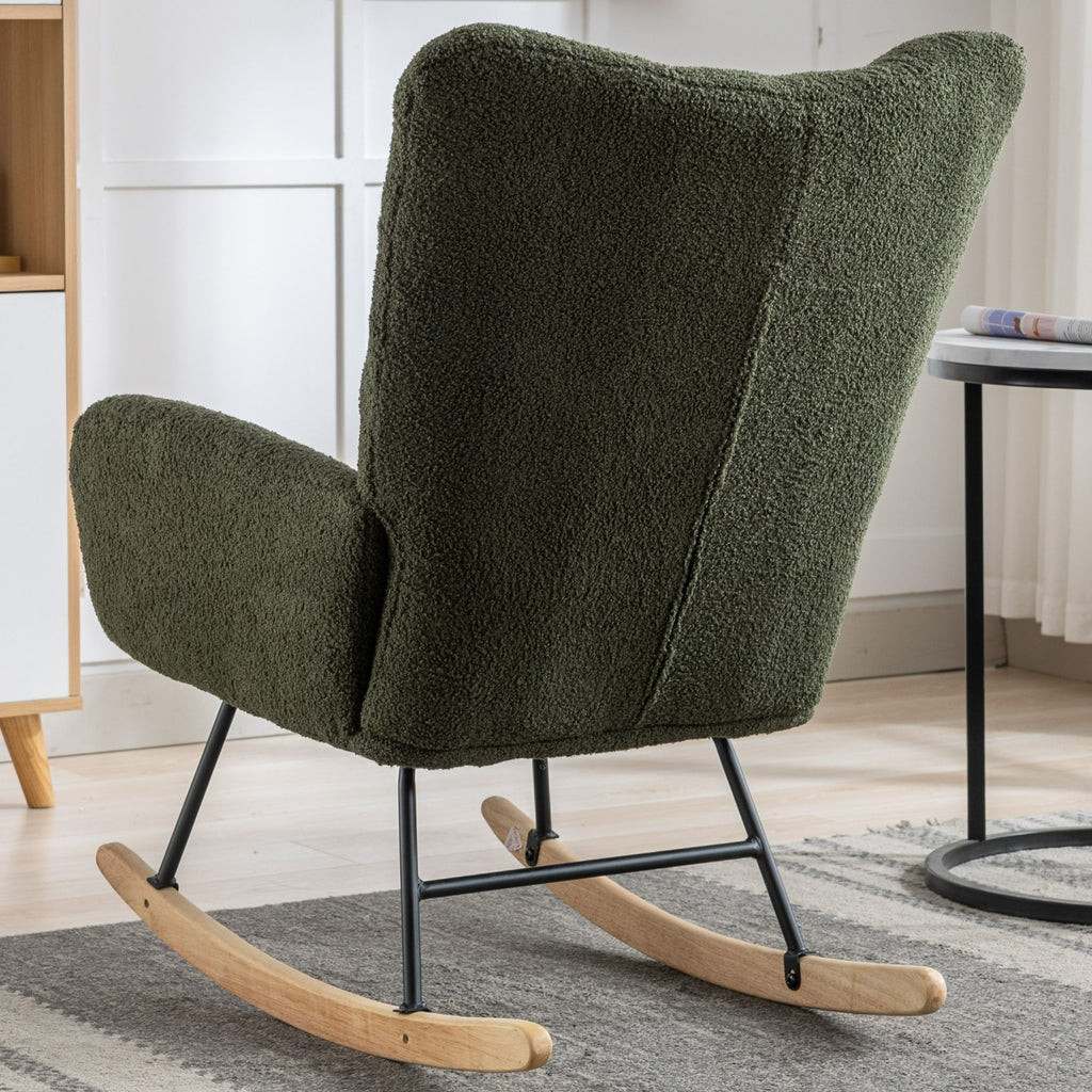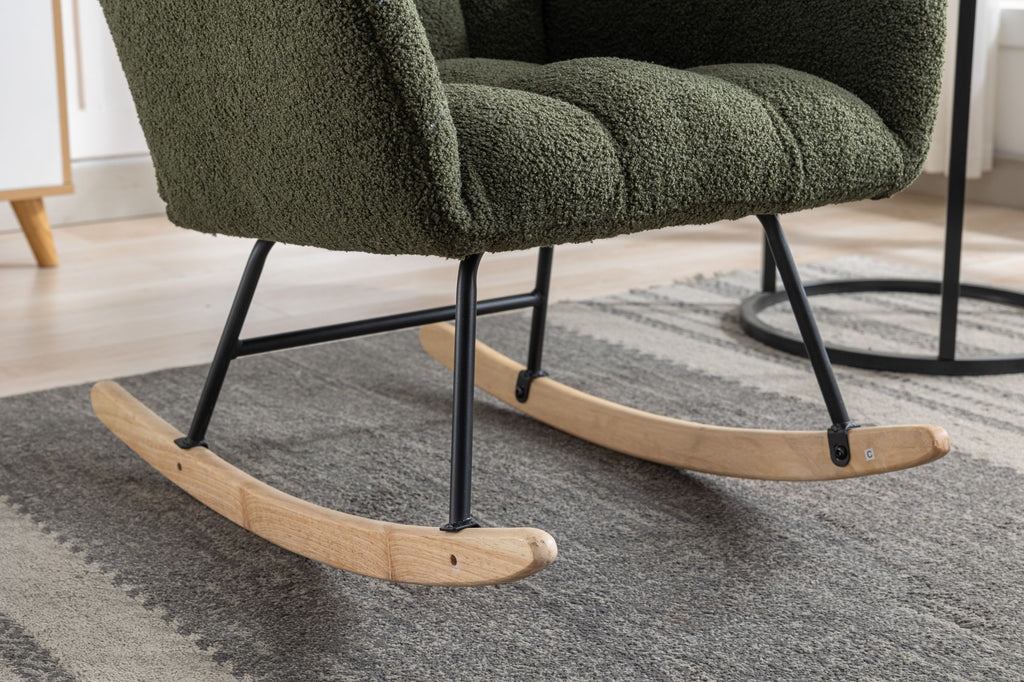 Exceptional Comfort: Upholstered in soft teddy fleece and filled with high-density foam, this modern rocking chair offers a luxurious seating experience. The generously sized seat provides ample space and ensures ultimate comfort, making it perfect for relaxation.